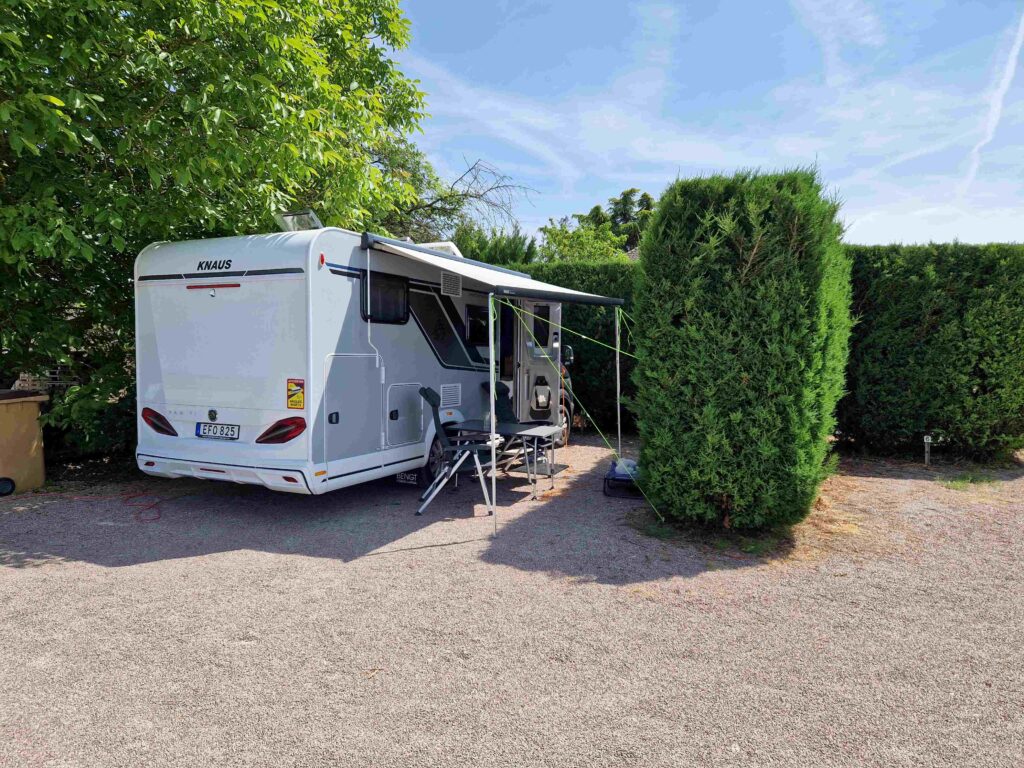 Ännu en fin ställplats på en vingård. Nu i Bourgogne. Här finns sex platser med tillgång till el och vatten. I kylskåpet hämtar man vin och betalar genom att lägga pengar i ett kuvert i en låda. Härligt med förtroende. Eftersom det ännu är lågsäsong får man stanna två nätter, så vi passar på att njuta av det vackra landskapet och en extra natt.