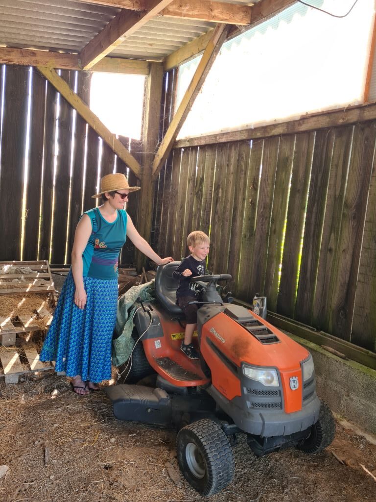 I ett skjul hittade Elias gårdens gräsklippartraktor.