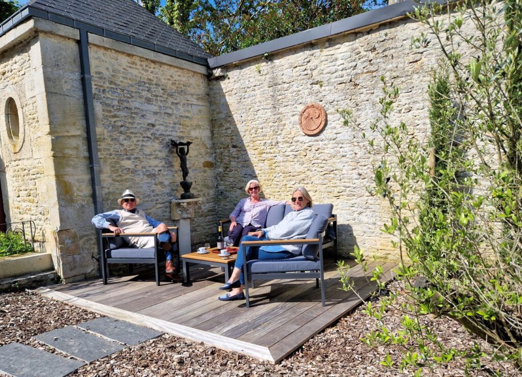 Efter en god lunch på en närbelägen golfklubb med anor från början av 1900-talet blev det kaffe med Calvados i en solig vrå.