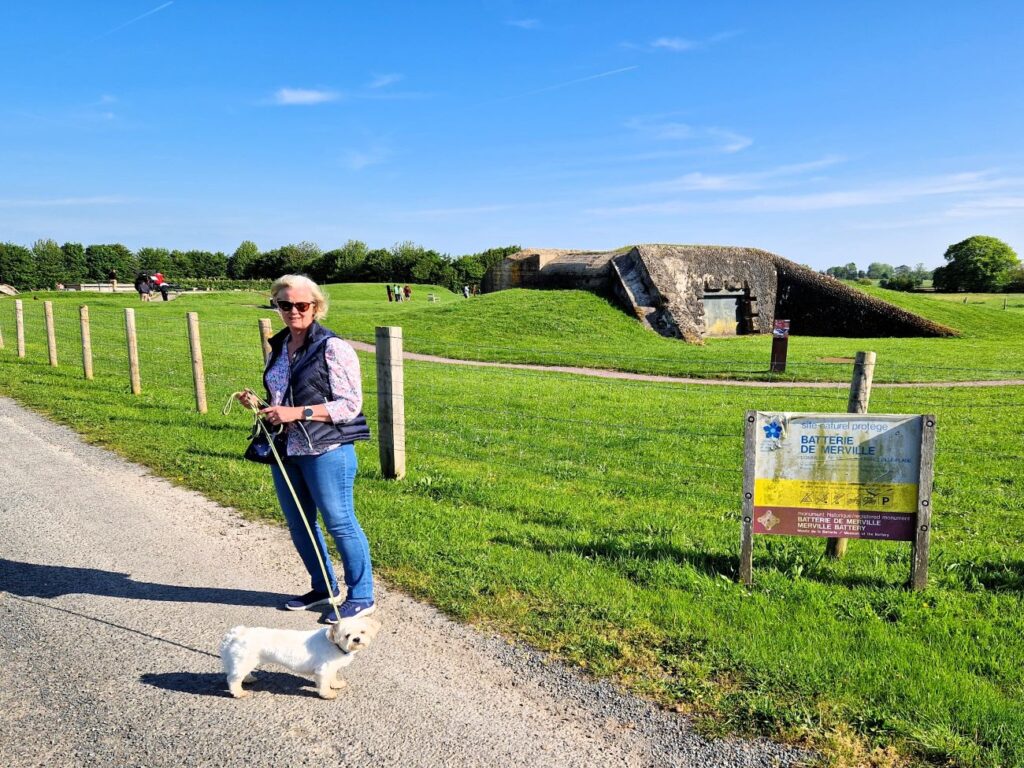 I dagarna har man firat slutet av andra världkriget. Det finns många minnen av förlorade familjemedlemmar. Vi promenerade runt museet ”Merville Battery” eftersom Molly inte fick följa med in.