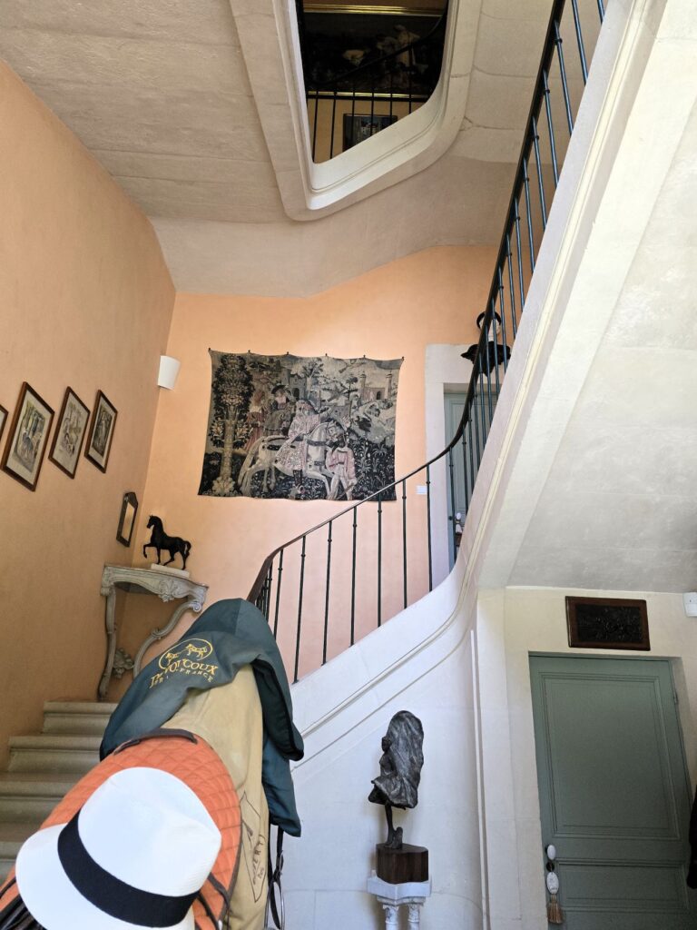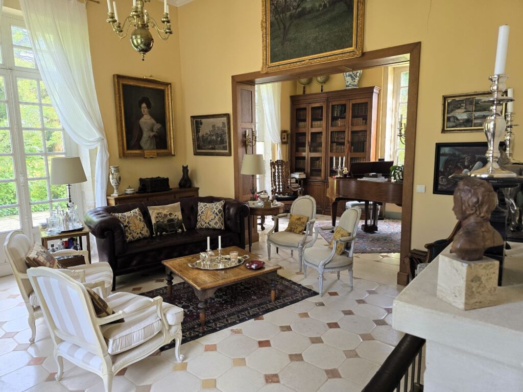 För mer än 20 år sedan köpte de fastigheten som då var illa skadad av en bomb som gått rakt genom taket utan att ha exploderat. De har sedan lagt mycket kraft, tid och pengar på att rusta upp detta 1600-talschateau.