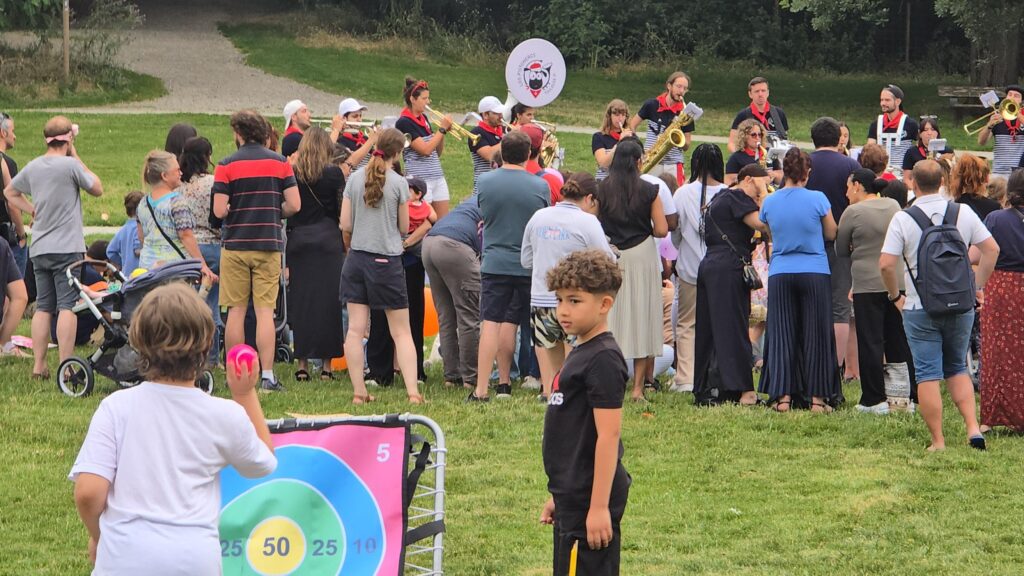 Lördagen började med skolfest i parken. Där var full fart med lekar, sång och musik.